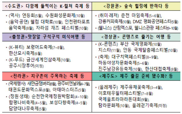 ☞ 전국 주요 지역축제, 이벤트 개최 계획